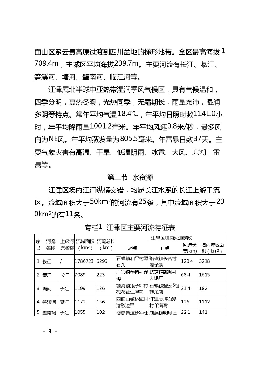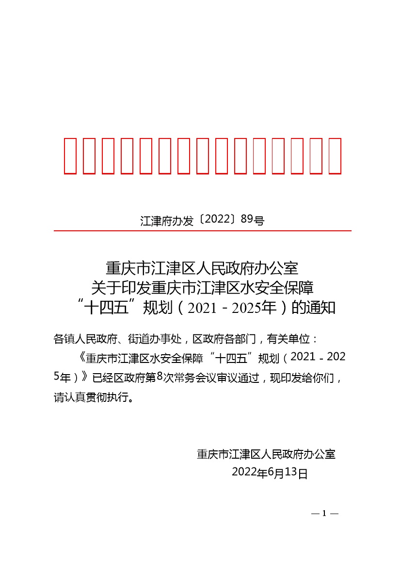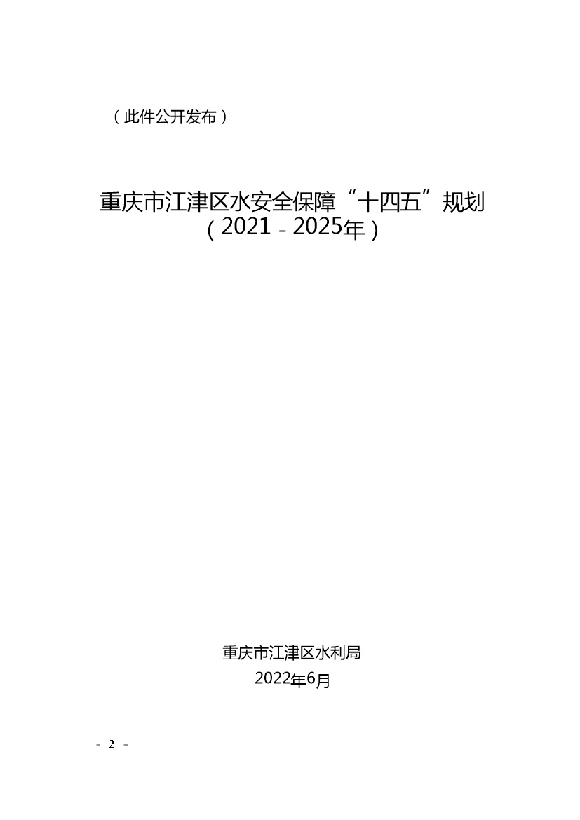 重慶市江津區(qū)水安全保障“十四五”規(guī)劃(2021-2025年)