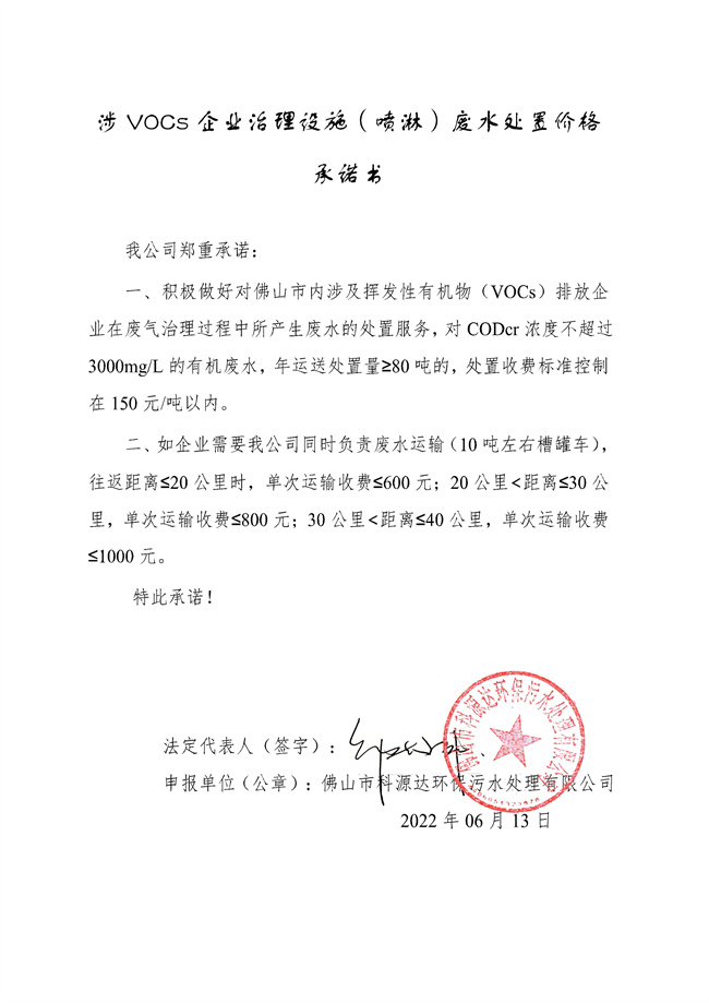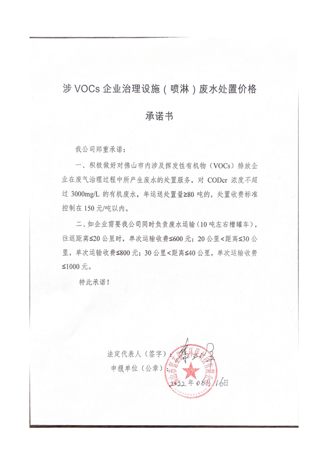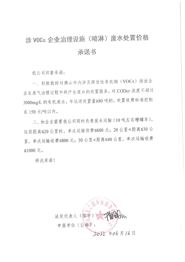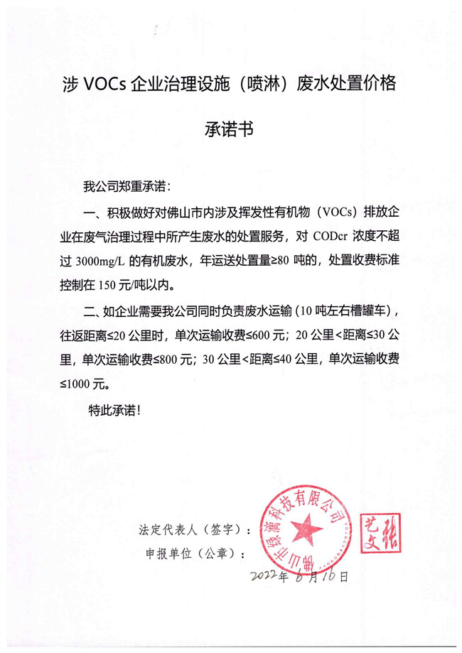 150元/噸以內(nèi)!佛山廢水處理企業(yè)公開承諾VOCs治理設(shè)施 (噴淋)廢水處置價(jià)格