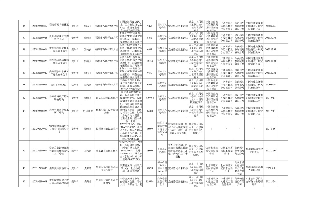 2.貴州省建設(shè)用地土壤污染風(fēng)險(xiǎn)管控和修復(fù)名錄移出清單(2022年第二批)