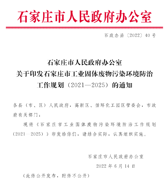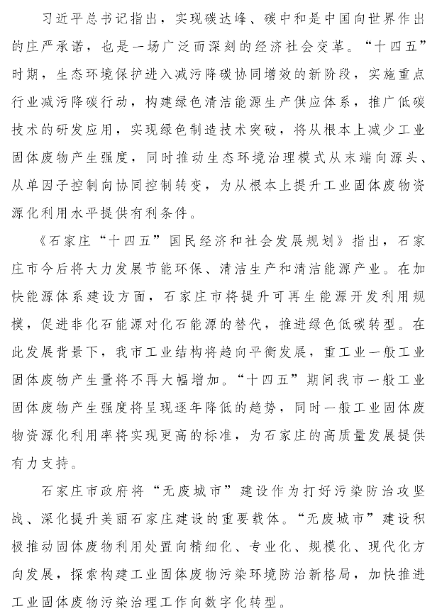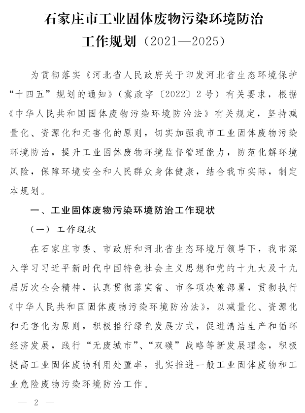 《石家莊市工業(yè)固體廢物污染環(huán)境防治工作規(guī)劃》印發(fā)!