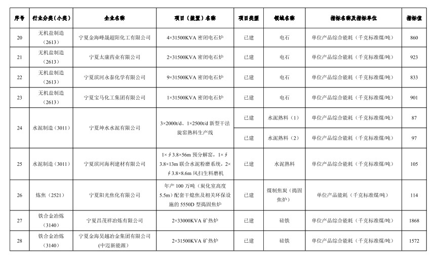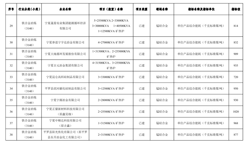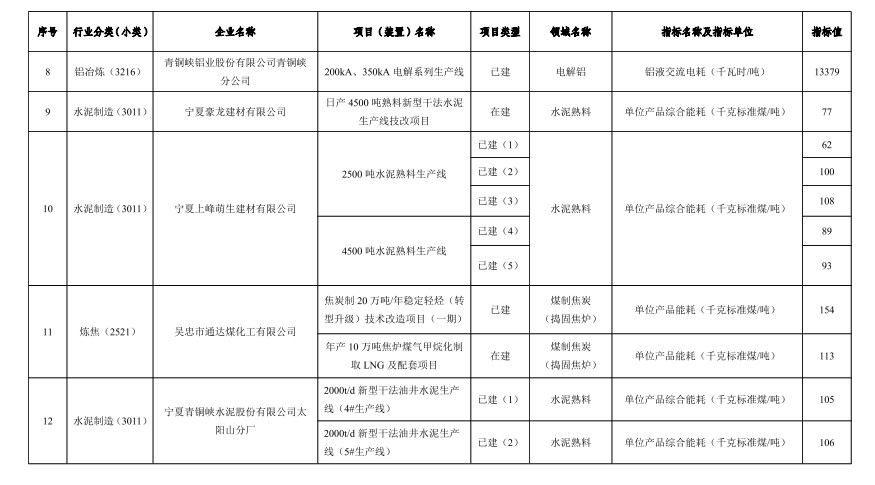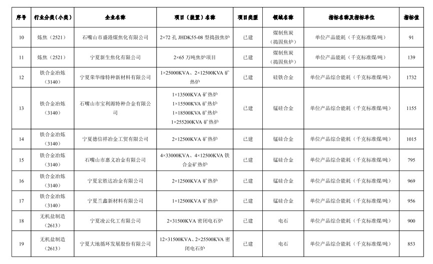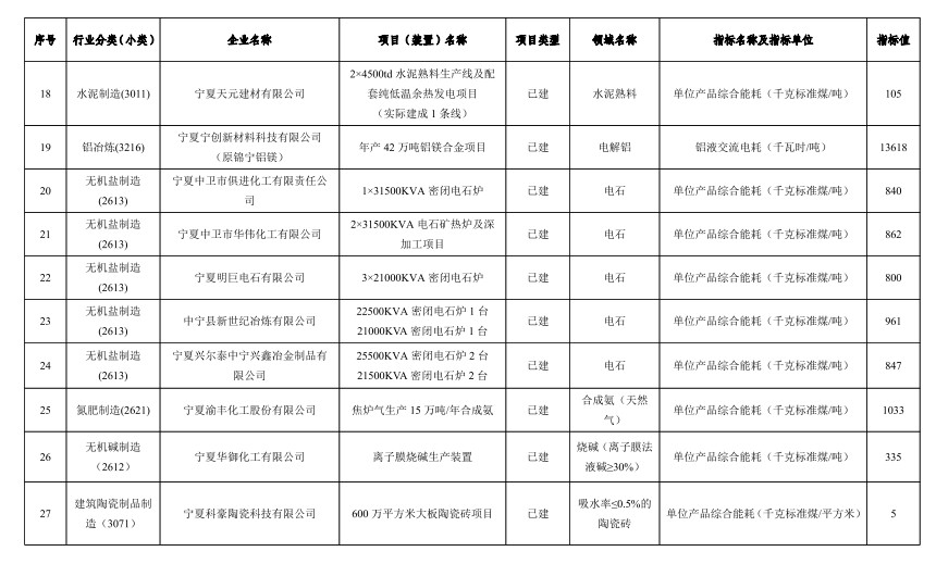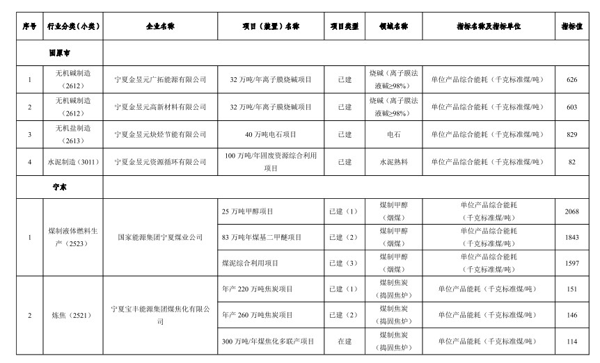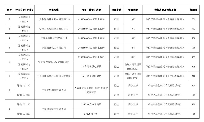 寧夏公布自治區(qū)重點領域企業(yè)能效清單目錄(2022年)