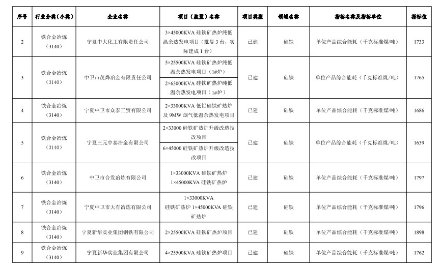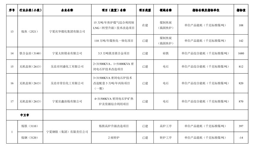 獲悉,6月16日,寧夏公布自治區(qū)重點領域企業(yè)能效清單目錄(2022年),詳情如下: