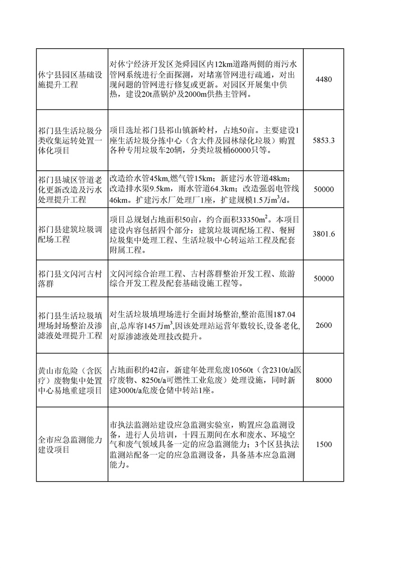 附件:黃山市“十四五”生態(tài)環(huán)境保護(hù)規(guī)劃項目庫