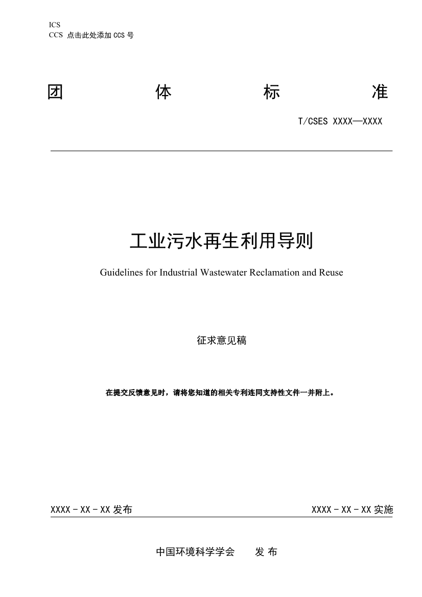 中國環(huán)境科學(xué)學(xué)會團體標準《工業(yè)污水再生利用導(dǎo)則(征求意見稿)》