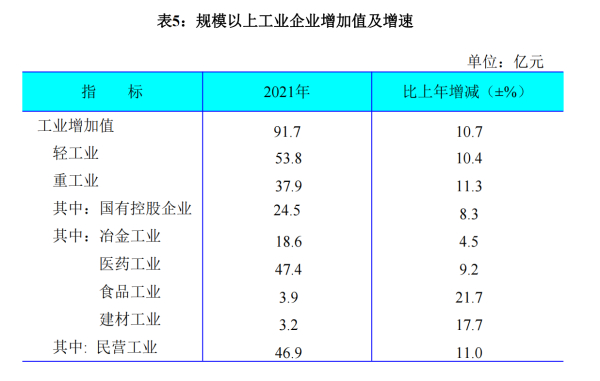 年末全市規(guī)模以上工業(yè)企業(yè)達202戶,全年實現(xiàn)規(guī)模以上工業(yè)增加值91.7億元,按可比價格計算,比上年增長10.7%。其中,輕工業(yè)實現(xiàn)增加值53.8億元,增長10.4%;重工業(yè)實現(xiàn)增加值37.9億元,增長11.3%。