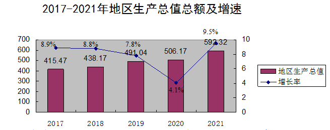 全年實(shí)現(xiàn)地區(qū)生產(chǎn)總值592.32億元,可比增長9.5%。其中,第一產(chǎn)業(yè)增加值40.11億元,增長7.5%;第二產(chǎn)業(yè)增加值359.38億元,增長9.6%;第三產(chǎn)業(yè)增加值192.83億元,增長10.2%。三產(chǎn)結(jié)構(gòu)由2020年的7.8:59.4:32.8調(diào)整為6.8:60.7:32.5,三產(chǎn)占比下降了0.3個(gè)百分點(diǎn)。三次產(chǎn)業(yè)對經(jīng)濟(jì)增長的貢獻(xiàn)率分別為6.1%、59.8%和34.1%。人均生產(chǎn)總值為109587.4元,增長17.3%,按年均匯率折算為17176.71美元。非公有制經(jīng)濟(jì)快速發(fā)展,實(shí)現(xiàn)增加值258.55億元,可比增長11.8%,占全市生產(chǎn)總值的比重達(dá)43.6%,比上年提高1個(gè)百分點(diǎn)。