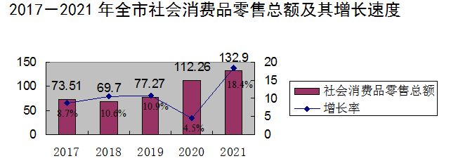 全市實(shí)現(xiàn)社會(huì)消費(fèi)品零售總額132.9億元,增長18.4%。其中,限額以上消費(fèi)品零售額32.52億元,增長27.2%。