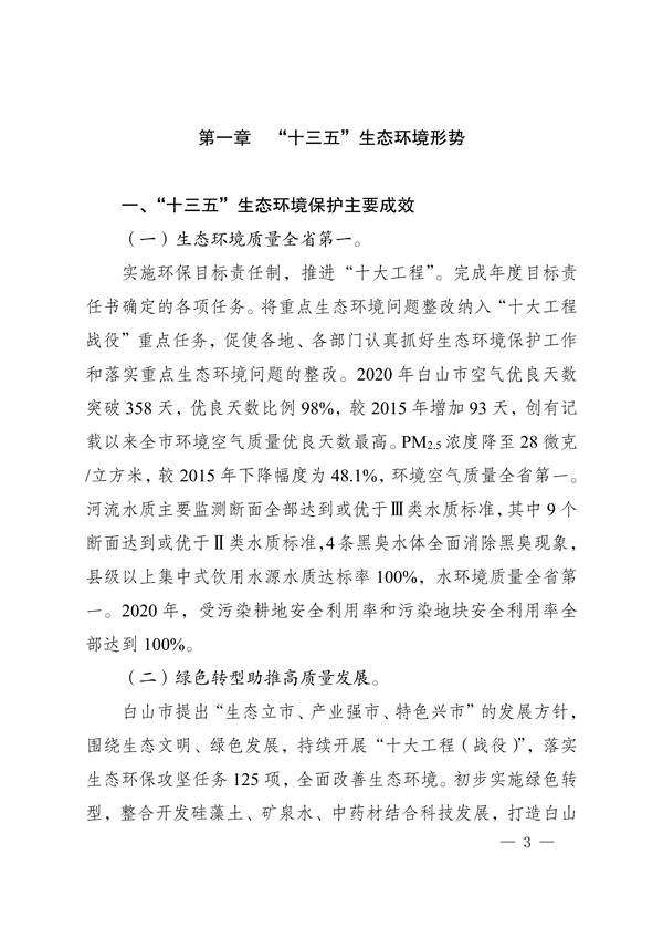 白山市生態(tài)環(huán)境保護(hù)“十四五”規(guī)劃