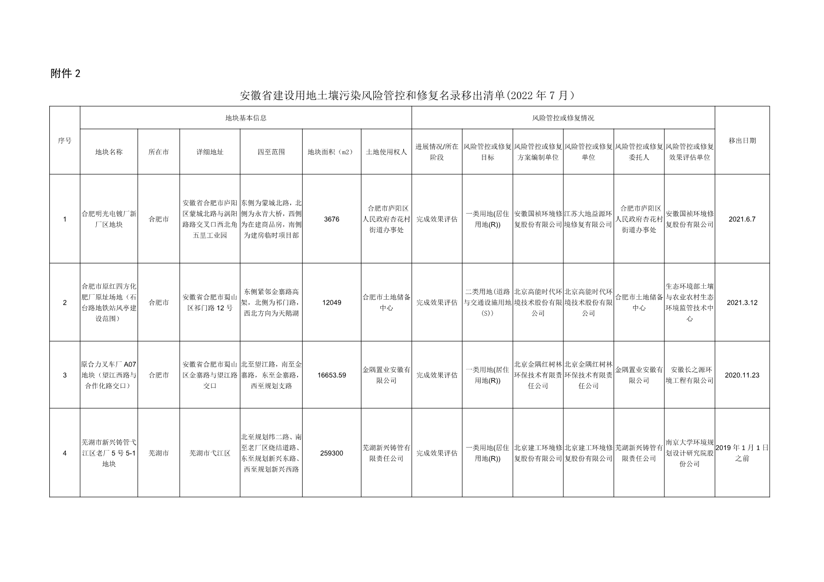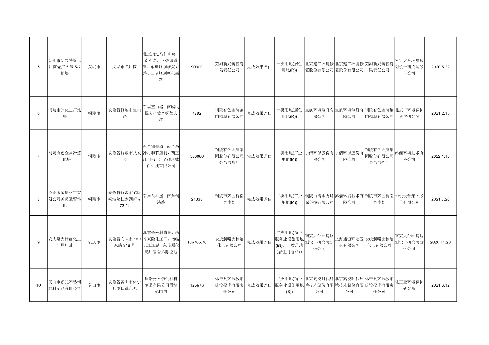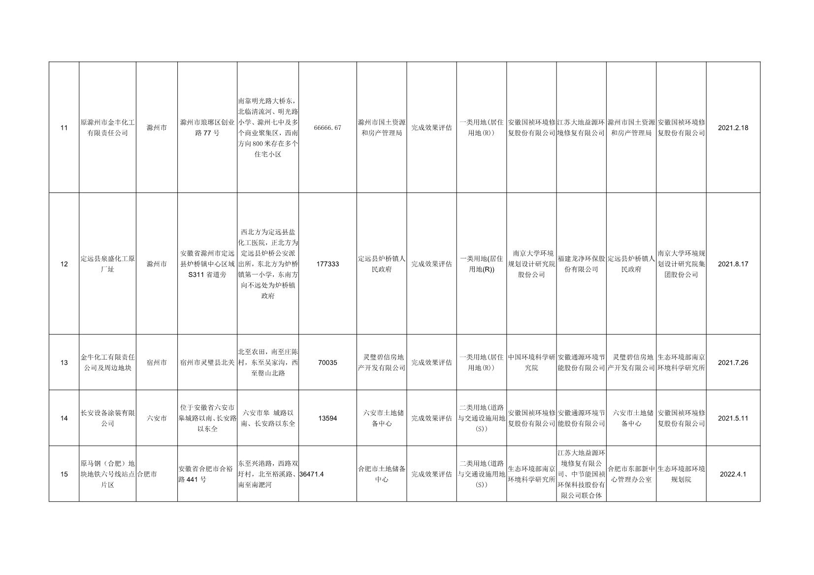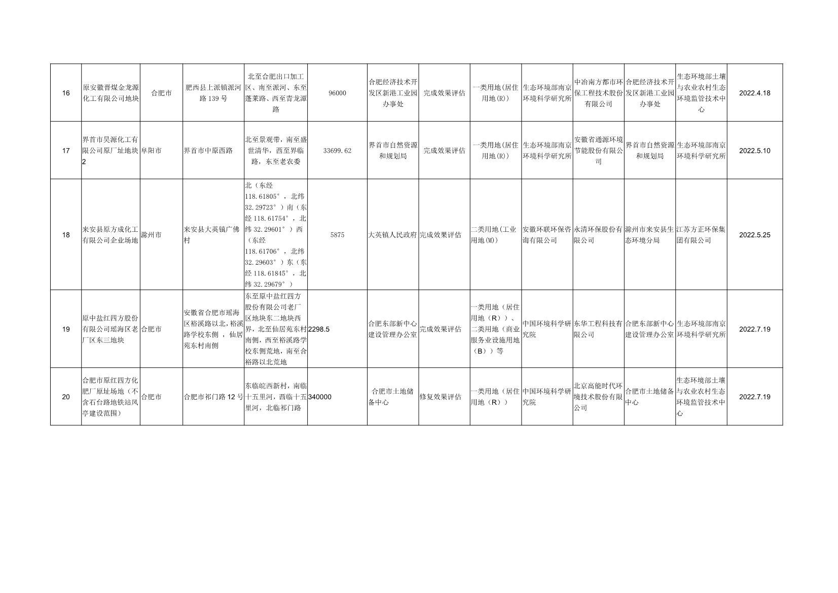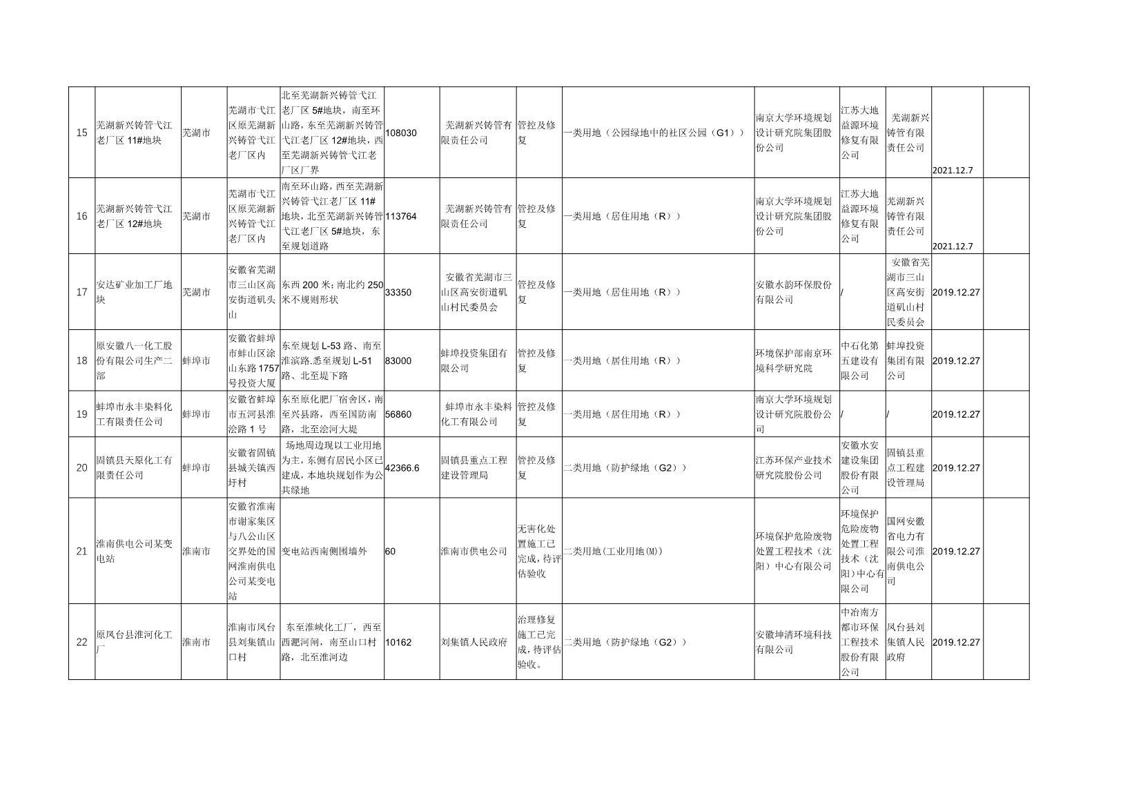 安徽省建設(shè)用地土壤污染風(fēng)險管控和修復(fù)名錄(2022年7月)