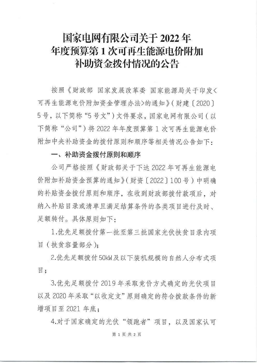 7月15日,國(guó)家電網(wǎng)公司發(fā)布《國(guó)家電網(wǎng)有限公司關(guān)于2022年年度預(yù)算第1次可再生能源電價(jià)附加補(bǔ)助資金撥付情況的公告》,發(fā)布2022年第一批補(bǔ)貼資金!文件指出:2022年年度預(yù)算第1次請(qǐng)款,財(cái)政部共預(yù)計(jì)撥付公司可再生能源電價(jià)附加補(bǔ)助資金年度預(yù)算3,993,719萬(wàn)元,其中:風(fēng)力發(fā)電1,051,809萬(wàn)元、太陽(yáng)能發(fā)電 2,606,737萬(wàn)元、生物質(zhì)能發(fā)電335,173萬(wàn)元。