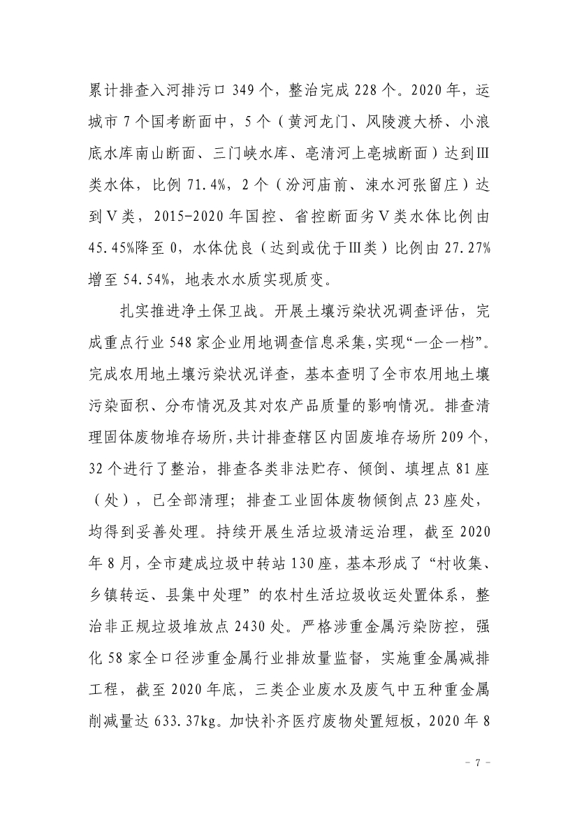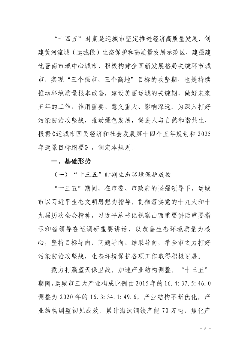 運城市“十四五”生態(tài)環(huán)境保護規(guī)劃