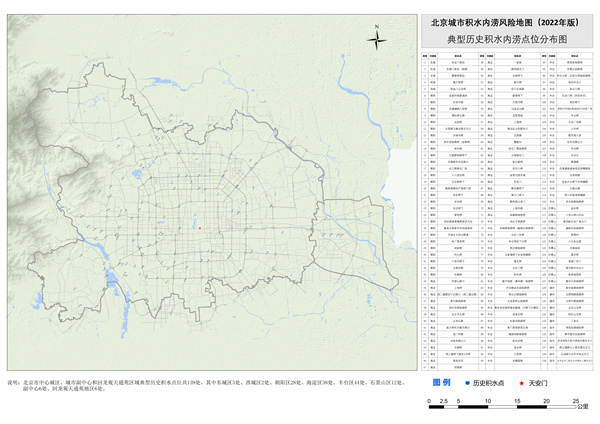 本次發(fā)布的積水內(nèi)澇風(fēng)險(xiǎn)地圖主要針對(duì)下凹橋區(qū)、市政主干道路等易產(chǎn)生積水內(nèi)澇風(fēng)險(xiǎn)的區(qū)域,通過(guò)梳理近十年積水內(nèi)澇風(fēng)險(xiǎn)點(diǎn)臺(tái)賬,同時(shí)輔助水文水動(dòng)力模型、大數(shù)據(jù)統(tǒng)計(jì)等技術(shù),采用“風(fēng)險(xiǎn)分布圖+信息列表”相結(jié)合的表達(dá)方式,形成覆蓋北京市中心城區(qū)、城市副中心和回龍觀天通苑區(qū)域積水內(nèi)澇風(fēng)險(xiǎn)地圖,面向社會(huì)公眾發(fā)布使用,由于降雨的不確定性、模型的有限性以及城市建設(shè)變化的影響,難以精準(zhǔn)覆蓋全部風(fēng)險(xiǎn)情況,圖中所列的積水內(nèi)澇風(fēng)險(xiǎn)僅涵蓋了歷史上發(fā)生過(guò)或通過(guò)模型模擬的可能發(fā)生的積水內(nèi)澇風(fēng)險(xiǎn),僅作為汛期積水內(nèi)澇風(fēng)險(xiǎn)提示的參考工具之一。