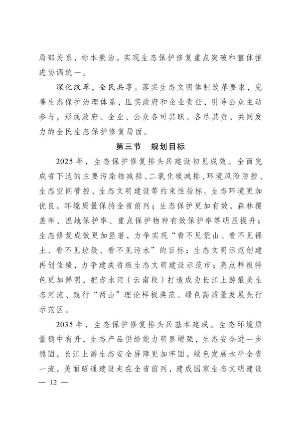 云南省昭通市委、市政府日前印發(fā)的《昭通市生態(tài)保護(hù)修復(fù)排頭兵規(guī)劃(2021—2035年)》(以下簡稱《規(guī)劃》)明確提出,把落實保護(hù)優(yōu)先、解決突出生態(tài)環(huán)境問題、補齊生態(tài)環(huán)境短板、筑牢長江上游重要生態(tài)安全屏障作為重點任務(wù),將良好生態(tài)環(huán)境打造成為最普惠的民生福祉,全面爭當(dāng)全省生態(tài)保護(hù)修復(fù)排頭兵。