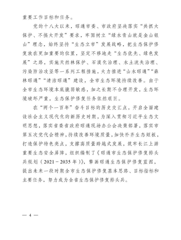 投資855億元實施285個重點項目 《昭通市生態(tài)保護(hù)修復(fù)排頭兵規(guī)劃(2021—2035年)》印發(fā)