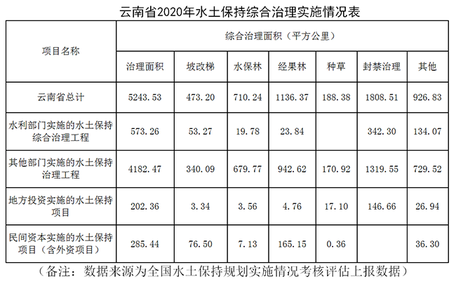(3)2020年2月21日,云南省水利廳聯(lián)合省發(fā)展改革委、省財政廳、省自然資源廳、省生態(tài)環(huán)境廳、省農(nóng)業(yè)農(nóng)村廳和省林草局完成云南省2019年度全國水土保持規(guī)劃實施情況評估的自評工作,并報送省人民政府。