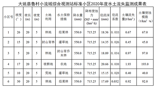 云南省大姚縣魯村監(jiān)測點、晉寧區(qū)大春河示范園監(jiān)測點列入全國水土流失動態(tài)監(jiān)測與公告項目。按照該項目的管理規(guī)定和技術(shù)要求,2020年度監(jiān)測成果如下:
