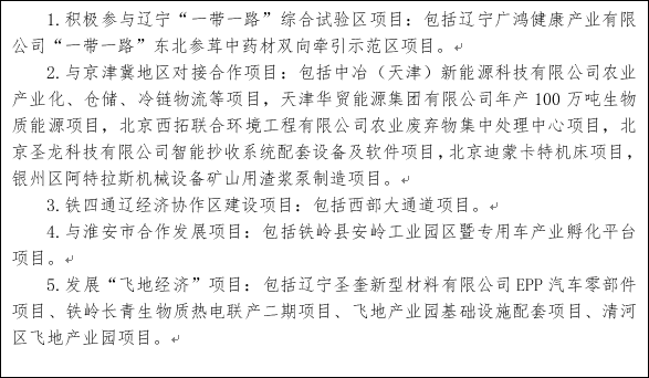 推進(jìn)與京津冀地區(qū)對接合作。圍繞推動鐵嶺特色裝備制造、專用汽車及汽車零部件、原材料工業(yè)、農(nóng)產(chǎn)品加工業(yè)等產(chǎn)業(yè)轉(zhuǎn)型升級,主動承接京津冀、長三角等地區(qū)的產(chǎn)業(yè)、資本、人才、技術(shù)等資源的轉(zhuǎn)移和輻射。大力發(fā)展綠色農(nóng)業(yè)、特色農(nóng)業(yè)、品牌農(nóng)業(yè)。圍繞開原、昌圖、西豐農(nóng)業(yè)產(chǎn)業(yè)集群,建設(shè)專供京津冀的區(qū)域農(nóng)產(chǎn)品流通中心。加強(qiáng)新能源、通用航空、電子信息(大數(shù)據(jù))、生物醫(yī)藥、節(jié)能環(huán)保、現(xiàn)代物流、文化旅游、健康養(yǎng)老等領(lǐng)域的對接與合作,培育壯大鐵嶺新興產(chǎn)業(yè),提升現(xiàn)代服務(wù)業(yè)發(fā)展水平。堅持大項目帶動、配套企業(yè)跟進(jìn)、產(chǎn)業(yè)集群發(fā)展,通過精準(zhǔn)招商完善產(chǎn)業(yè)鏈,扶持一批大型骨干企業(yè),推動鐵嶺比較優(yōu)勢產(chǎn)業(yè)轉(zhuǎn)型升級。