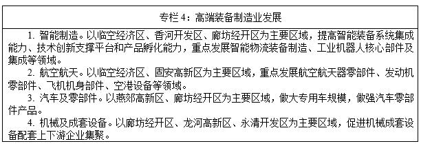 促進(jìn)協(xié)同創(chuàng)新。依托燕郊高新區(qū)、三河經(jīng)開區(qū)、大廠高新區(qū)、香河經(jīng)開區(qū),共建一批國家實(shí)驗(yàn)室、企業(yè)技術(shù)中心、技術(shù)創(chuàng)新中心、科技企業(yè)孵化器、科技成果中試熟化基地、專業(yè)化技術(shù)轉(zhuǎn)移機(jī)構(gòu),培育一批高新技術(shù)企業(yè),提升協(xié)同創(chuàng)新能力;重點(diǎn)打造燕郊北部科學(xué)城、中國人民大學(xué)文化創(chuàng)意產(chǎn)業(yè)園、香河高鐵商務(wù)區(qū)等承接平臺,落地實(shí)施一批產(chǎn)業(yè)項(xiàng)目。促進(jìn)產(chǎn)業(yè)聯(lián)動。聚焦新一代信息技術(shù)、高端裝備制造、節(jié)能環(huán)保、生物健康、高端服務(wù)業(yè)、文化旅游、都市農(nóng)業(yè)等七大領(lǐng)域,精準(zhǔn)高效承接非首都功能疏解,重點(diǎn)推動在中試孵化、制造和配套服務(wù)環(huán)節(jié)實(shí)現(xiàn)產(chǎn)業(yè)協(xié)同分工,主動融入北京城市副中心產(chǎn)業(yè)鏈創(chuàng)新鏈供應(yīng)鏈;集聚教育培訓(xùn)、醫(yī)療健康、養(yǎng)老休閑等要素,布局建設(shè)“微中心”,引入北京向外疏解的優(yōu)質(zhì)公共服務(wù)資源,培育新的經(jīng)濟(jì)增長點(diǎn)。
