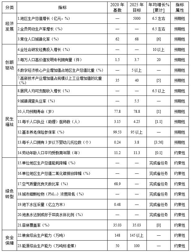 “十四五”時期經(jīng)濟(jì)社會發(fā)展主要指標(biāo)