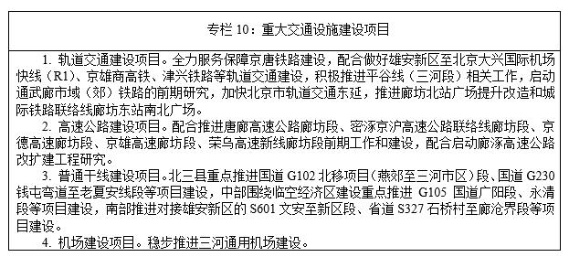 協(xié)同發(fā)展取得重要進(jìn)展。立體化綜合交通體系不斷完善,京雄城際鐵路、津保鐵路建成通車,京唐城際鐵路、城際鐵路聯(lián)絡(luò)線等軌道交通項(xiàng)目穩(wěn)步推進(jìn);新機(jī)場北線高速廊坊段、京臺高速、密涿高速、京秦高速、津石高速開通運(yùn)營,京雄高速、京德高速、榮烏新線等高速公路加快建設(shè),一批交通瓶頸得到破解。積極與京津兩地聯(lián)動協(xié)同,大氣、水污染聯(lián)防聯(lián)控成效明顯。與北京共建產(chǎn)業(yè)合作平臺,承接北京非首都功能疏解有序推進(jìn)。提高政治站位服務(wù)保障三大歷史性工程,圓滿完成北京大興國際機(jī)場保通航任務(wù),臨空經(jīng)濟(jì)區(qū)規(guī)劃建設(shè)工作全面展開,自由貿(mào)易試驗(yàn)區(qū)大興機(jī)場片區(qū)、大興國際機(jī)場綜合保稅區(qū)正式掛牌;北三縣與通州區(qū)協(xié)同發(fā)展規(guī)劃體系編制完成,產(chǎn)業(yè)對接轉(zhuǎn)移成效顯著,醫(yī)療教育資源合作逐步深入;全力支持雄安新區(qū)規(guī)劃建設(shè),強(qiáng)化周邊區(qū)域管控,交通互聯(lián)、生態(tài)修復(fù)、產(chǎn)業(yè)配套等工作穩(wěn)步推進(jìn)。