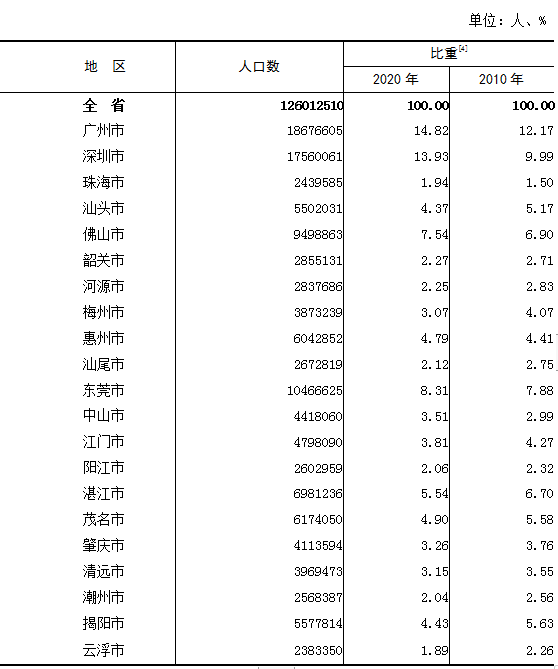 一、地區(qū)人口廣東省第七次人口普查統(tǒng)計(jì)公報(bào)