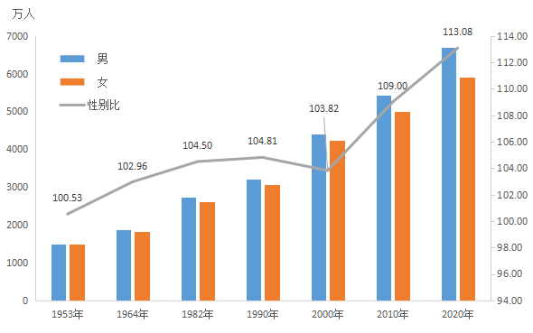 圖3-1 歷次人口普查人口性別構(gòu)成大牛工程師