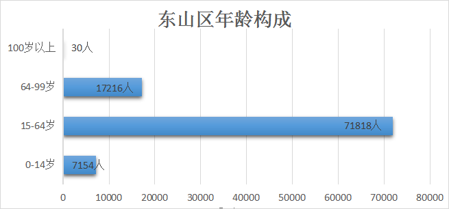 東山區(qū)常住人口0-14歲人口7154人,占7.44%;15-64歲人口71818人,占74.64%;65-99歲及以上人口17216人,占17.92%;100歲以上人口30人。與2010年第六次全國人口普查相比,0-14歲人口的比重下降2.63個百分點,15-64歲人口的比重下降4.13個百分點,65歲及以上人口的比重上升6.76個百分點。