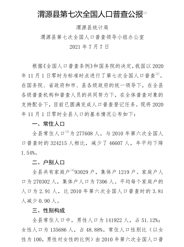 (甘肅省)渭源縣人口數(shù)據(jù)第七次全國人口普查公報