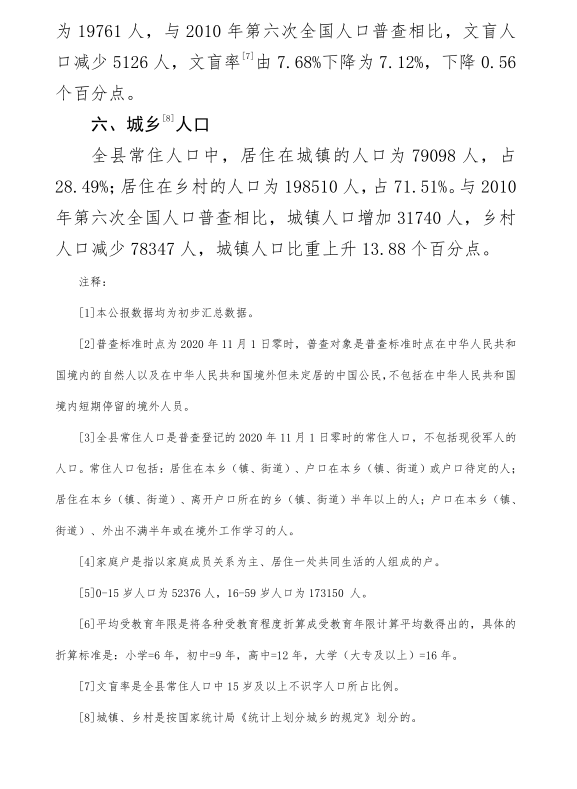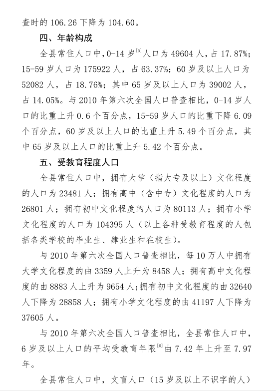 (甘肅?。┪荚纯h人口數(shù)據(jù)第七次全國人口普查公報