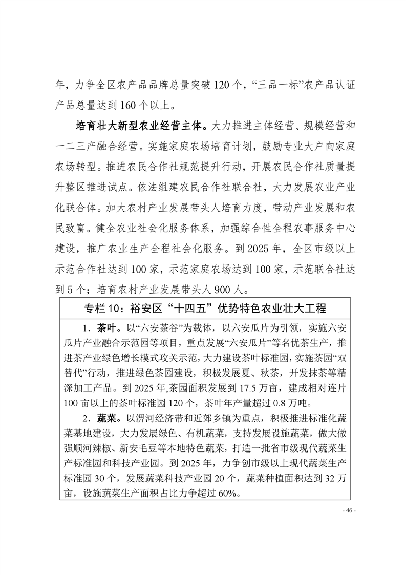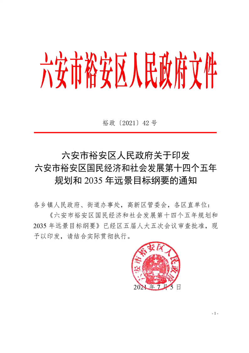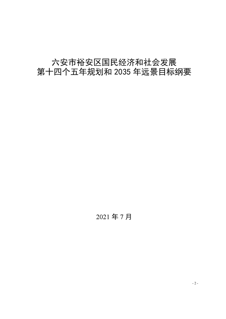 六安市裕安區(qū)國民經(jīng)濟和社會發(fā)展第十四個五年規(guī)劃和2035年遠景目標綱要