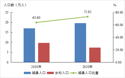 全區(qū)常住人口[3]中,居住在城鎮(zhèn)的人口為195605人,占72.92%;居住在鄉(xiāng)村的人口為73866人,占27.08%。與2010年第六次全國(guó)人口普查[4]相比,城鎮(zhèn)人口增加25498人,鄉(xiāng)村人口減少23490人,城鎮(zhèn)人口比重提高9.32個(gè)百分點(diǎn)。大牛工程師