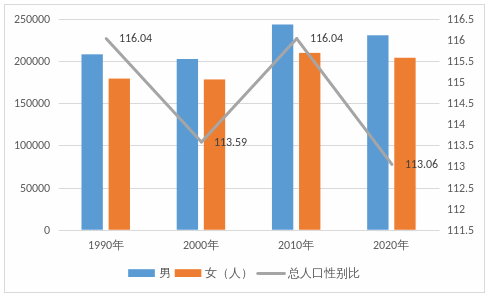 圖3-11990年以來陽西縣人口性別構(gòu)成