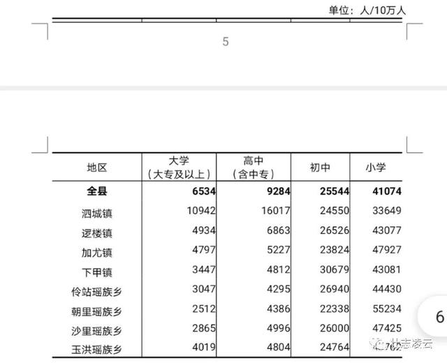 表4 各鄉(xiāng)鎮(zhèn)每10萬人口中擁有的各類受教育程度人數(shù)凌云縣第七次全國人口普查主要數(shù)據(jù)公報