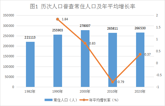 全縣常住人口[3]為266530人,與2010年第六次全國(guó)人口普查的256811人相比,十年共增加9719人,增長(zhǎng)3.78% ,年平均增長(zhǎng)率為0.37%。