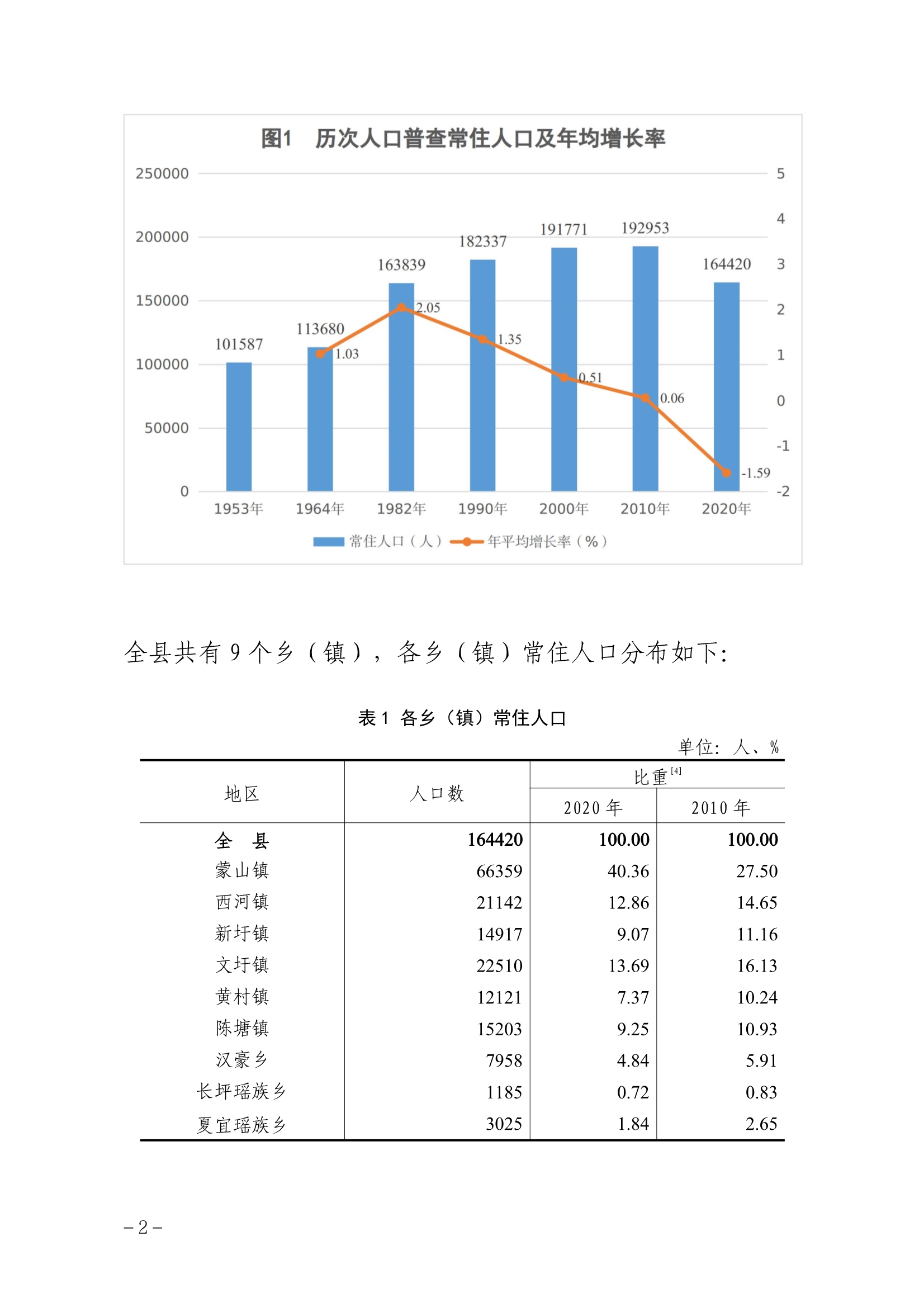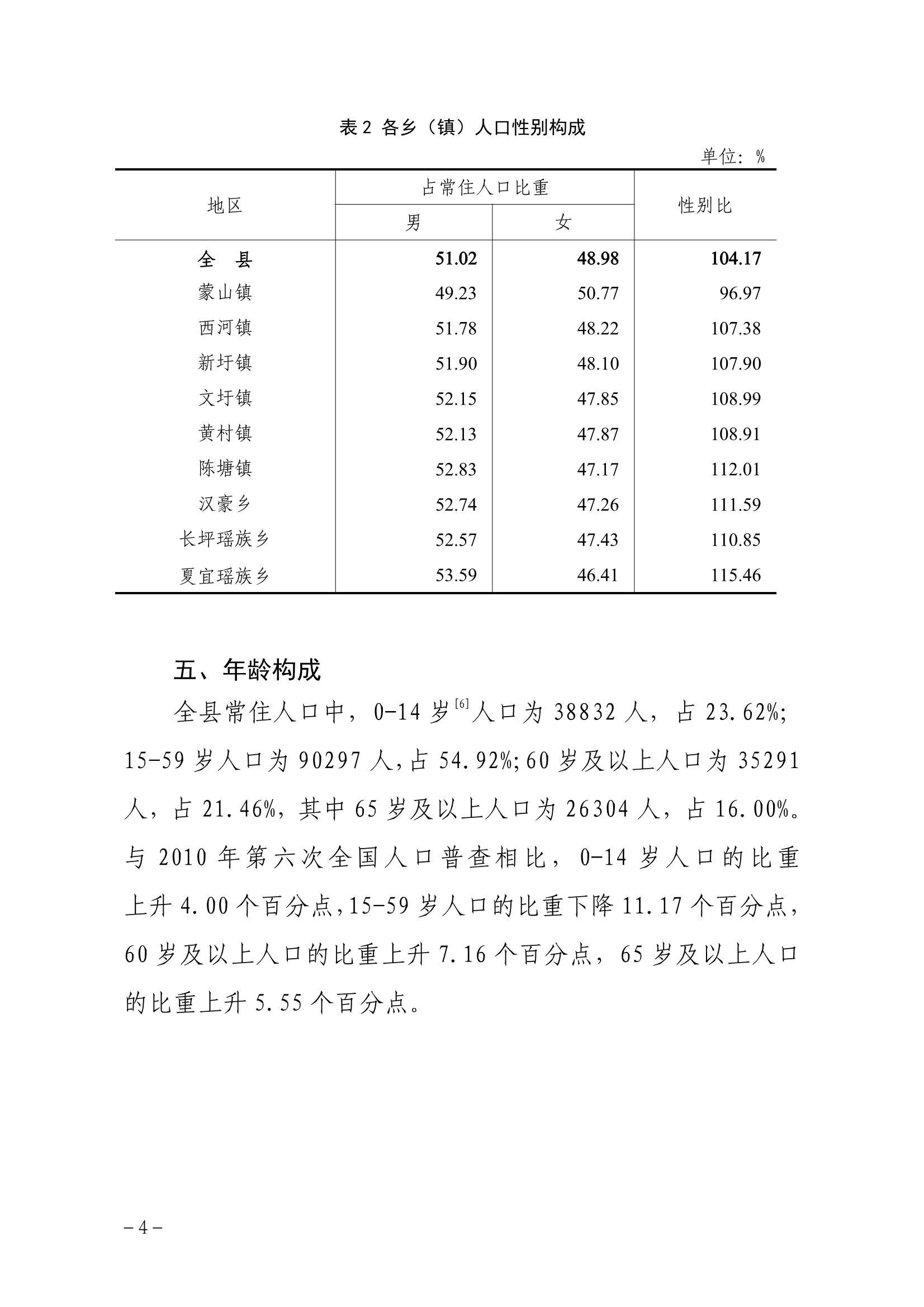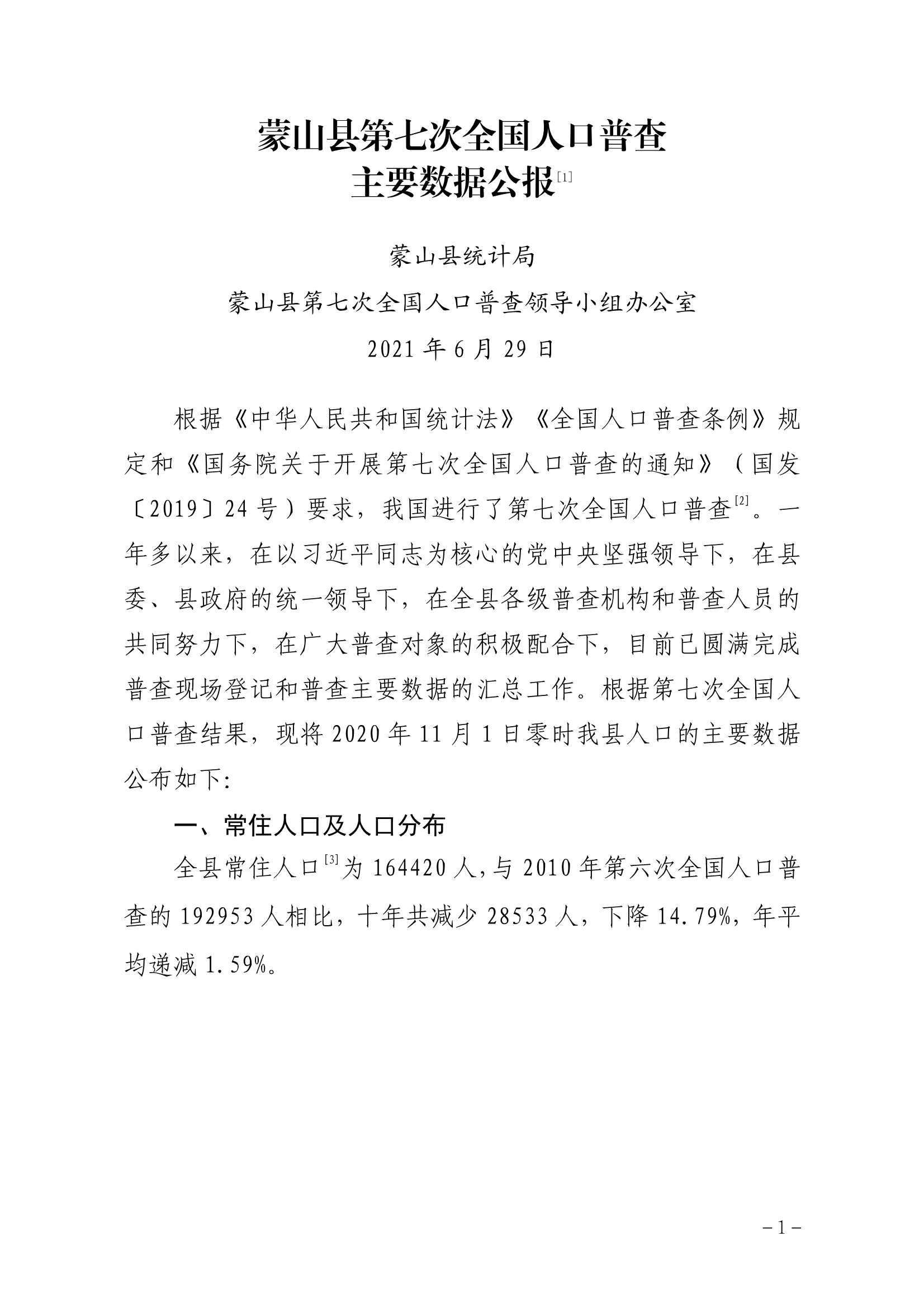 蒙山縣第七次全國人口普查主要數(shù)據(jù)公報