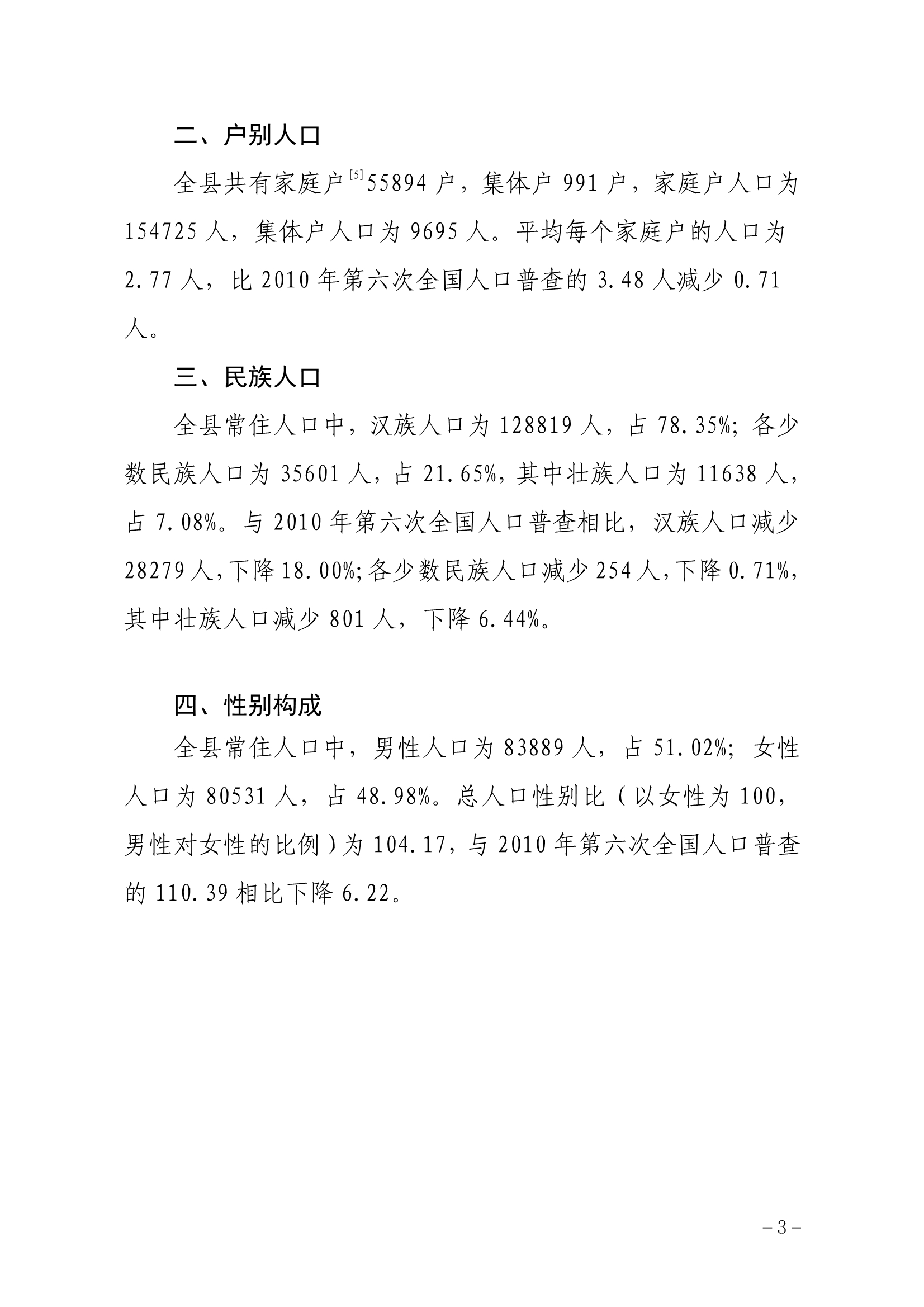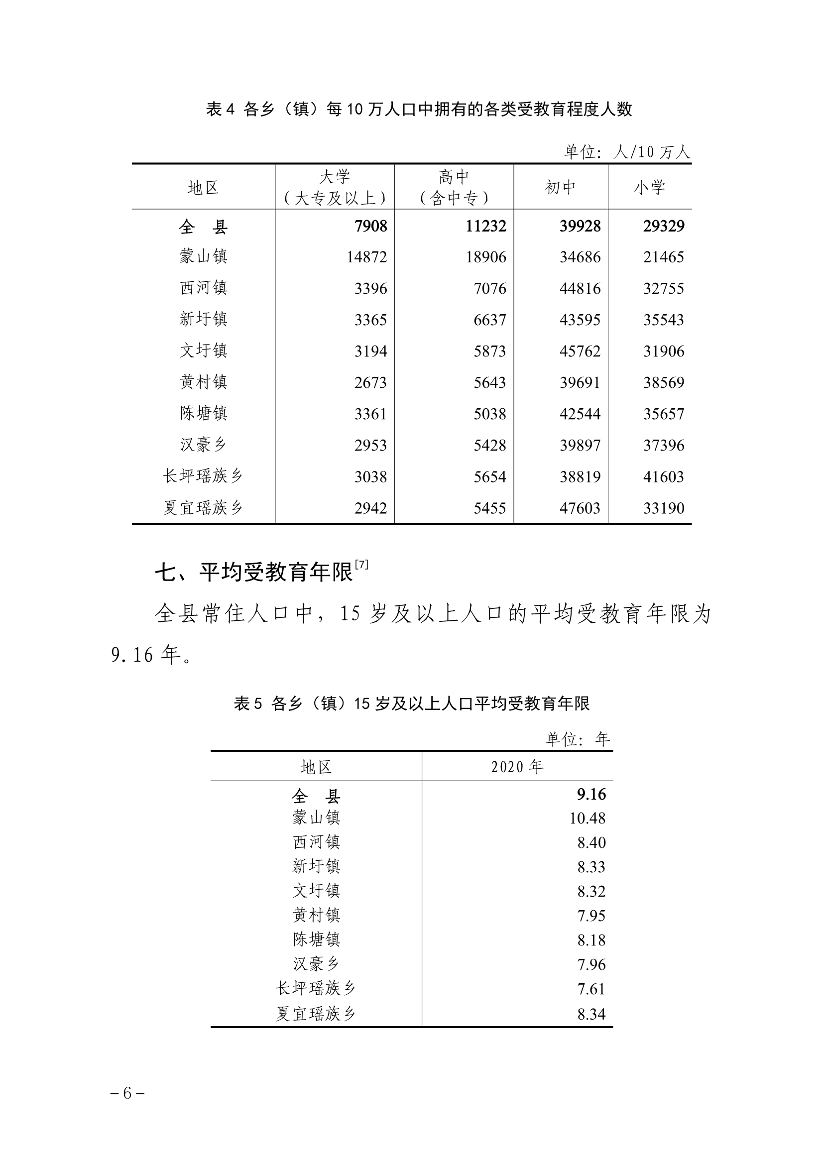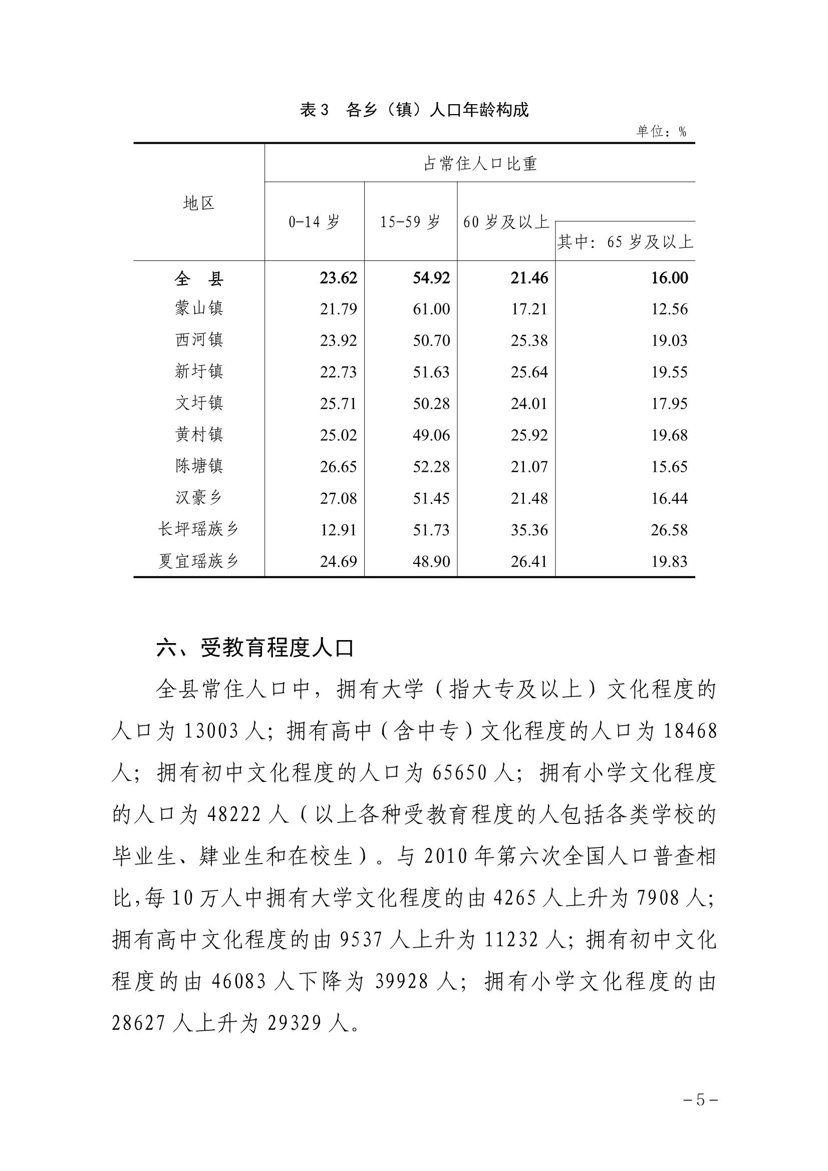蒙山縣第七次全國人口普查主要數(shù)據(jù)公報