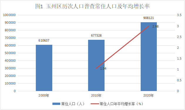 玉州區(qū)2020年普查時點常住人口[3]為908121人,與2010年第六次全國人口普查的677328人相比,增加230793人,增長34.07%,年平均增長率為2.98%。
