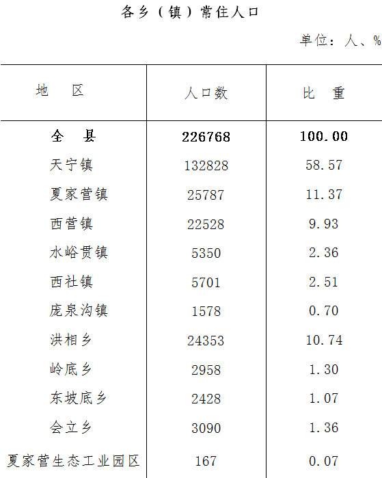 全縣常住人口[3]為226768人,與2010年第六次全國人口普查的230521人相比,十年間減少了3753人,下降了1.6%,年平均增長率-0.16%。大牛工程師