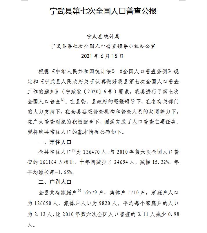 (山西省)寧武縣人口數(shù)據(jù)第七次全國(guó)人口普查公報(bào)