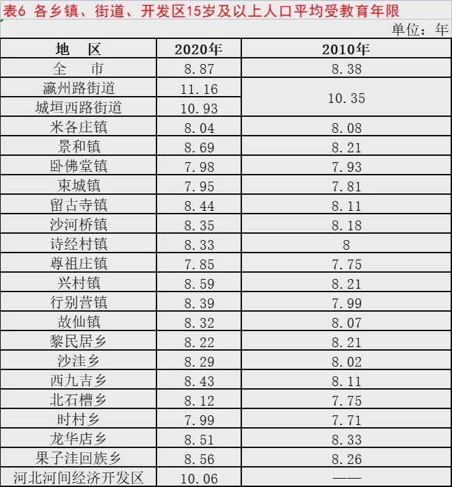 21個鄉(xiāng)鎮(zhèn)、街道、開發(fā)區(qū)中,平均受教育年限10年以上的有3個,8年至10年之間的有14個,8年以下的有4個。