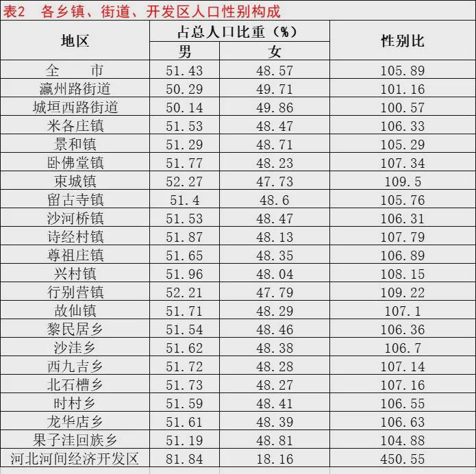 二、鄉(xiāng)鎮(zhèn)、街道、開發(fā)區(qū)人口性別構(gòu)成21個鄉(xiāng)鎮(zhèn)、街道、開發(fā)區(qū)中,總?cè)丝谛詣e比105以下的有3個, 105至110之間的有17個,110以上的有1個。