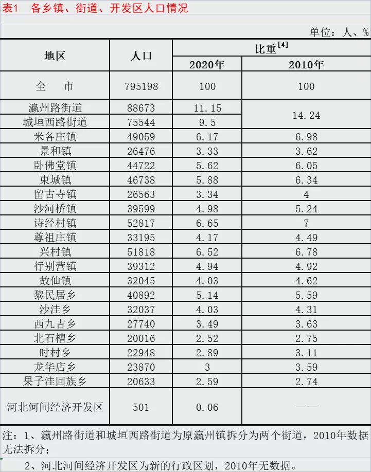 (河北?。┖娱g市人口數(shù)據(jù)第七次全國人口普查公報