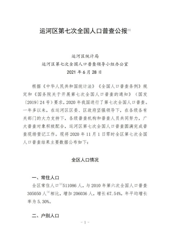 (河北?。┻\(yùn)河區(qū)人口數(shù)據(jù)第七次全國人口普查公報