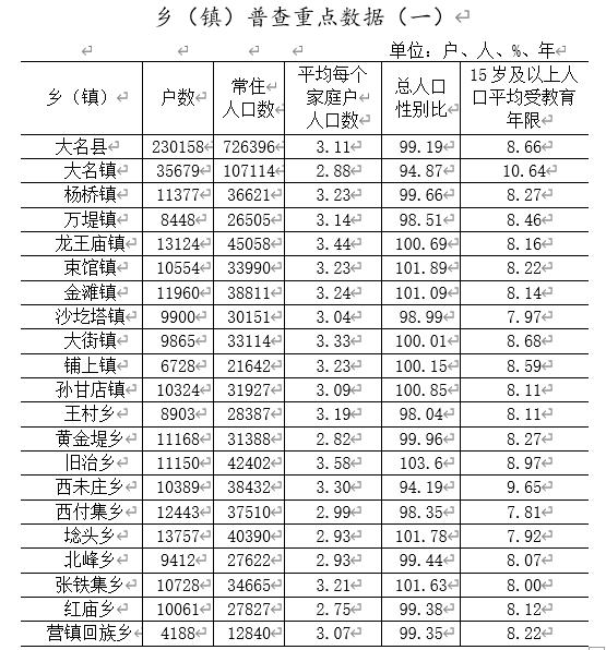 (河北?。┐竺h人口數(shù)據(jù)第七次全國人口普查公報