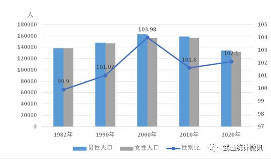 圖2 歷次人口普查常住人口性別構(gòu)成武邑縣第七次全國(guó)人口普查公報(bào)