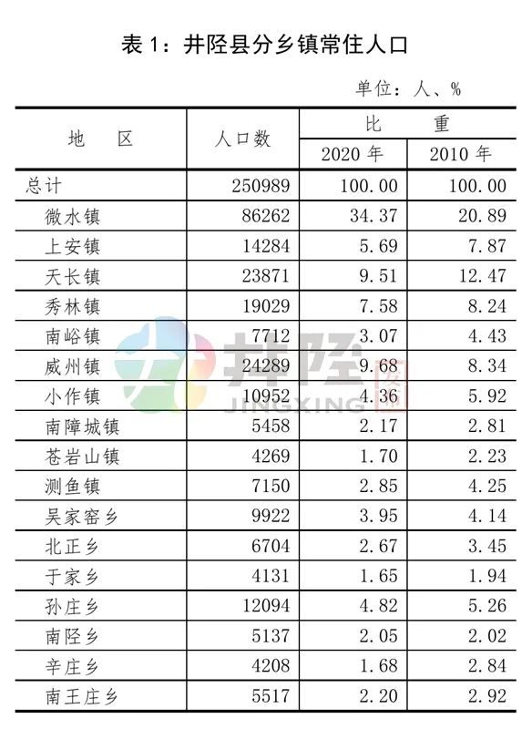 根據(jù)井陘縣第七次全國人口普查結(jié)果,現(xiàn)將2020年11月1日零時井陘縣常住人口[1]的有關(guān)數(shù)據(jù)公布如下: