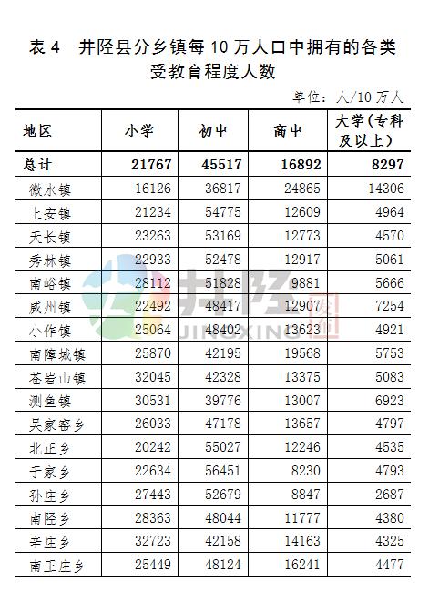 與2010年第六次全國人口普查相比,全縣常住人口中,15歲及以上人口的平均受教育年限[4]由9.10年提高至 9.61年。