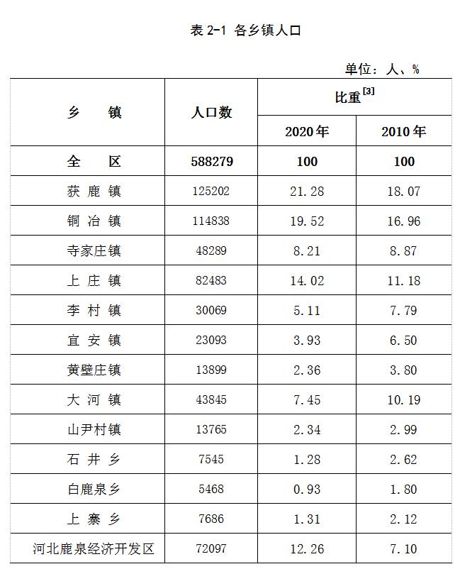 石家莊市鹿泉區(qū)第七次全國(guó)人口普查領(lǐng)導(dǎo)小組辦公室石家莊市鹿泉區(qū)第七次全國(guó)人口普查公報(bào)