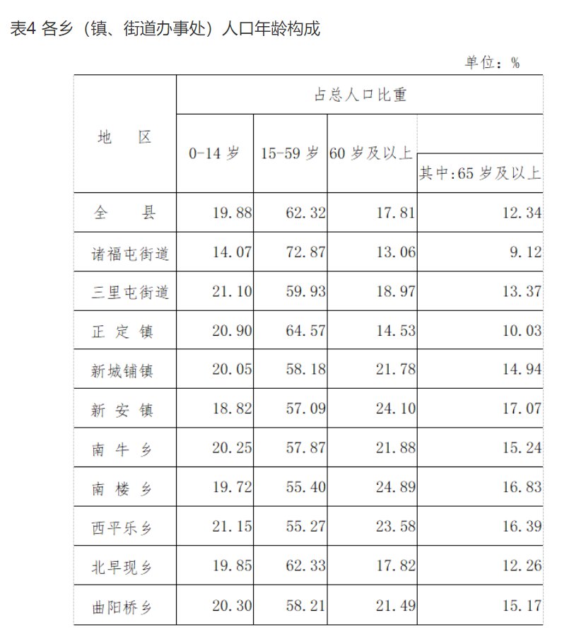 10個鄉(xiāng)(鎮(zhèn)、街道辦事處)中,65歲及以上老年人口比重均超過7%;其中,有6個鄉(xiāng)(鎮(zhèn)、街道辦事處)65歲及以上老年人口比重超過14%。