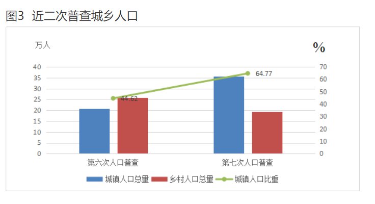 全縣常住人口中,居住在城鎮(zhèn)的人口為355785人,占64.77%;居住在鄉(xiāng)村的人口為193536人,占35.23%。與2010年第六次全國人口普查相比,城鎮(zhèn)人口增加147509人,鄉(xiāng)村人口減少64995人,城鎮(zhèn)人口比重上升20.15個百分點。